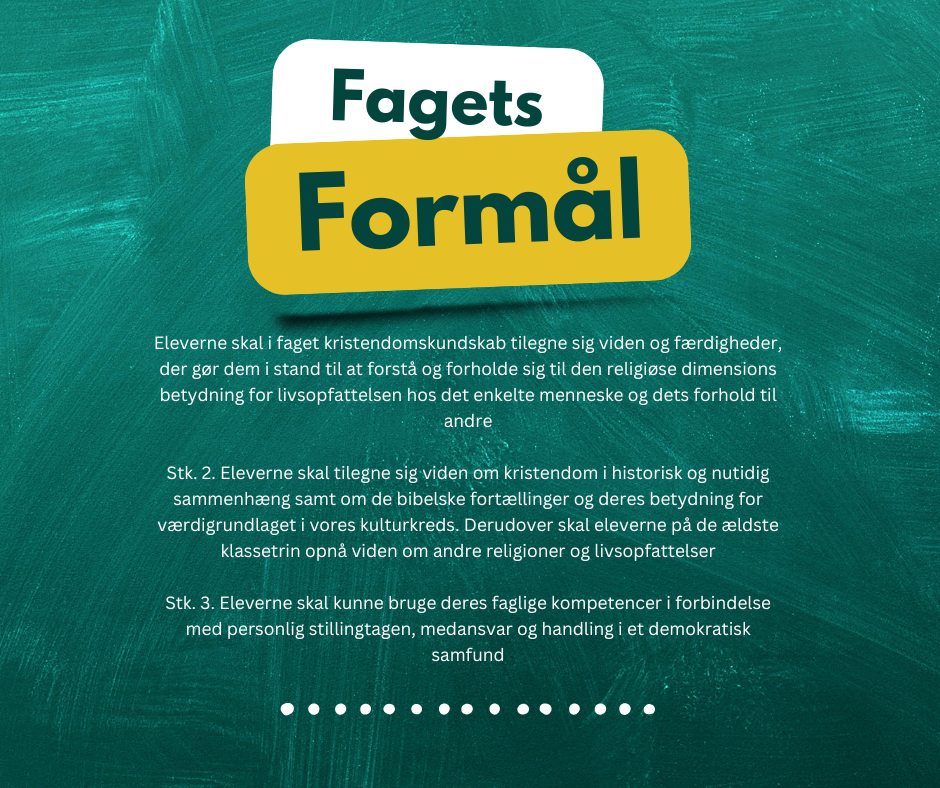 Formålet med en folkekirkelig skoletjeneste er at bidrage til god og spændende undervisning i faget kristendomskundskab i grundskolen og at udvikle og facilitere undervisningsbesøg i kirkens rum.